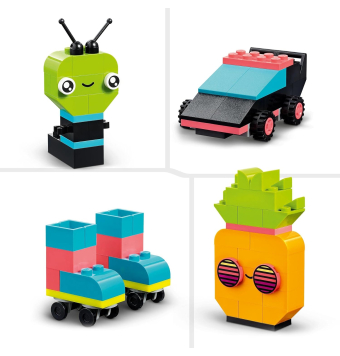 Con las claras guías que da Lego para construir una piña, un subrayador, un coche, un extraterrestre y unos patines, tu peque se atreverá con todo.