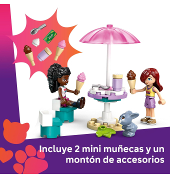 El set LEGO Friends un set para niñas y niños a partir de 4 años, viene con 2 mini muñecas, una figura de una conejita y accesorios para fomentar el juego creativo orios