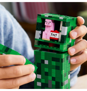 Este modelo de Lego Minecraft para construir, jugar y exponer del emblemático Creeper de Minecraft mide aproximadamente 21 cm de