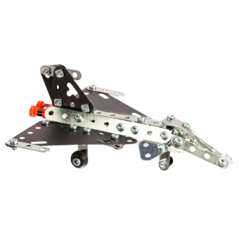 Con 153 piezas de metal duradero y 2 herramientas reales, este set permite construir hasta 10 modelos aéreos diferentes, como un Ala Delta de velocidad supersónica, un dron, un helicóptero y un hidroavión, entre otros.