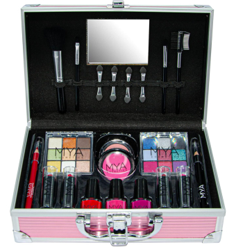 KIT TODO EN UNO PARA UNA EXPERIENCIA DE MAQUILLAJE COMPLETA El MYA Travel Metalic Pink es un maletín de maquillaje