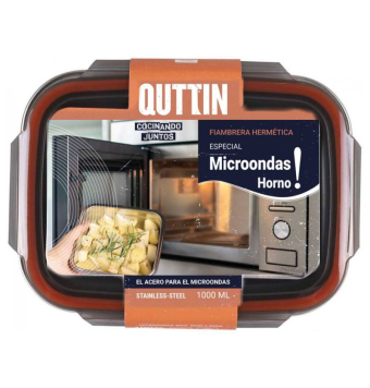Fiambrera hermética, con una capacidad de un 1L y tapa de acero inoxidable para proteger y mantener los alimentos.