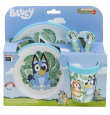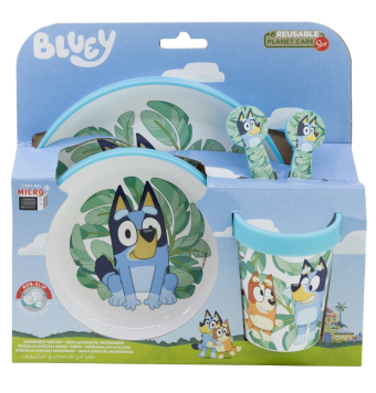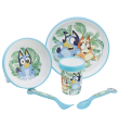 Vajilla infantil de Bluey con plato, cuenco, vaso y cubiertos y apto para microondas.