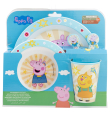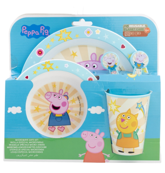Set vajilla infantil de Peppa Pig reutilizable apta para microondas compuesta por vaso, plato, cuenco y cubiertos.