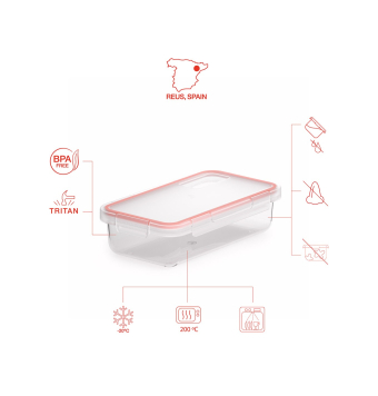 Es apto para su uso en microondas, lavavajillas y congelador, soportando temperaturas desde -20ºC hasta 100ºC.