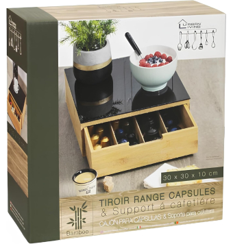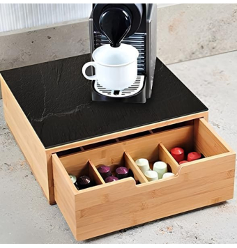 Siempre tendrás tus cápsulas de café recogidas y a mano con este cajón con soporte también para cafetera.