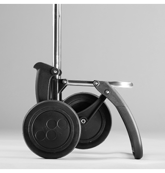 En posición de dos ruedas para llevar detrás cuando está vacío, y empujando delante cuando está lleno con 4 ruedas.