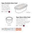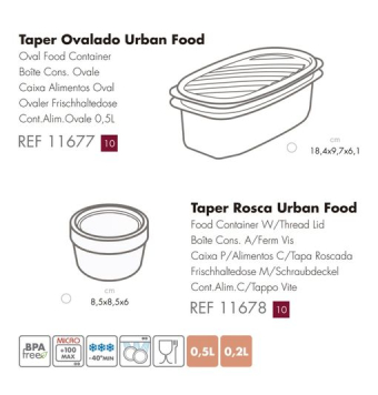 Táper Ovalado : 18.4 x 9.7 x 6.1 cm 0.5L Táper Redondo: 8.5 x 8.5 x 6 cm 0.2L