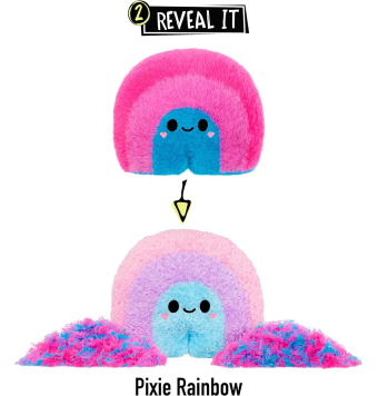 Tira de la capa exterior de pelusa de tu Fluffie Stuffiez para revelar el personaje que hay debajo. ¿Quién te tocará? Aprieta la pelusa