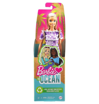 Descubre a Barbie The Ocean, con tejidos y accesorios hechos de plástico reciclado, una muñeca playera perfecta para inventar numerosas aventuras bajo el sol.