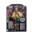 Esta muñeca de Monster High viene equipada con accesorios como un bolso extravagante, pósteres de grupos y aperitivos, perfecta para hacer fotos terroríficas y bailar hasta el amanecer.