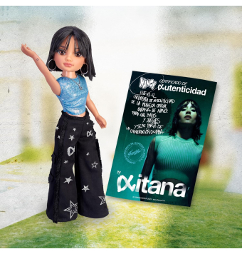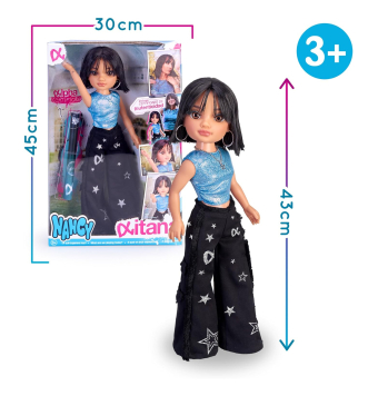 Nancy Aitana es una muñeca igual que la famosa cantante, con todos los detalles, como su pelo castaño oscuro corto con flequillo y su tatuaje Alpha.