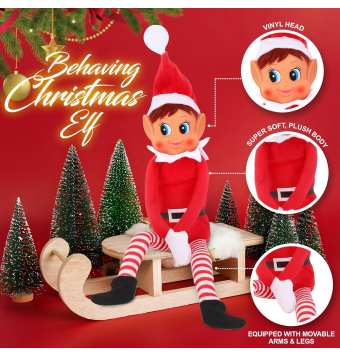 Esta niña elfo llamada Elvie está lista para aparecer en algunas escenas creativas de Elves Behavin' Badly esta temporada festiva. Con patas largas, un cuerpo suave y una cara de vinilo,