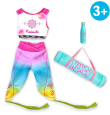 El pack de ropa incluye complementos y accesorios como un top y unas mallas de deporte hay 2 accesorios muy chulos que completan la experiencia de juego: una botella de agua a juego con el conjunto de deporte y una esterilla preciosa
