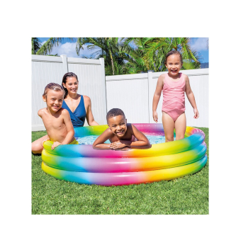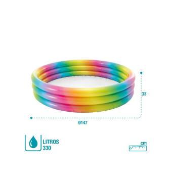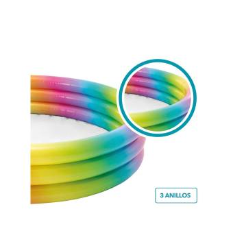 La piscina aros multicolor con diseño de arcoíris será el sueño de tus niños, permitiéndoles imaginar divertidas historias dentro del agua mientras juegan con sus amigos y familiares.