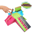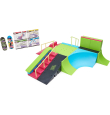 Esta pista de skate para dedos brilla en la oscuridad. Puedes crear un gran número de combinaciones con la escalera, la barandilla, el bordillo y la rampa para que cada vez tengas una pista diferente.