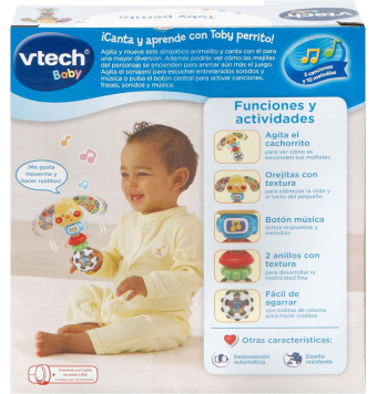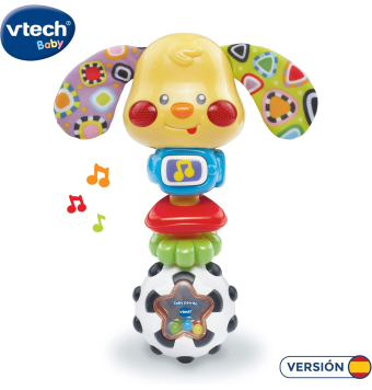 Perrito sonajero con luz, voces y música que se activa al moverlo gracias a su sensor de movimiento. Más de 20 canciones, sonidos,