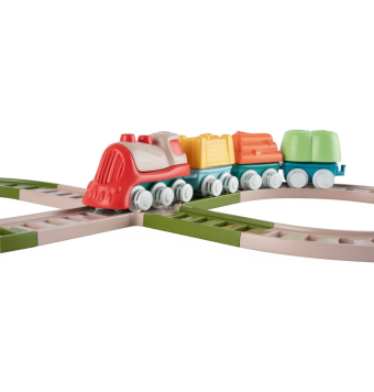 Da rienda suelta a la imaginación de los niños y niñas más pequeños con este trenecito de juguete; monta la vía a tu gusto y mueve el