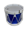 Tambor de Tamborrada de 25 x 21 cm con casco azul y aros blanco.